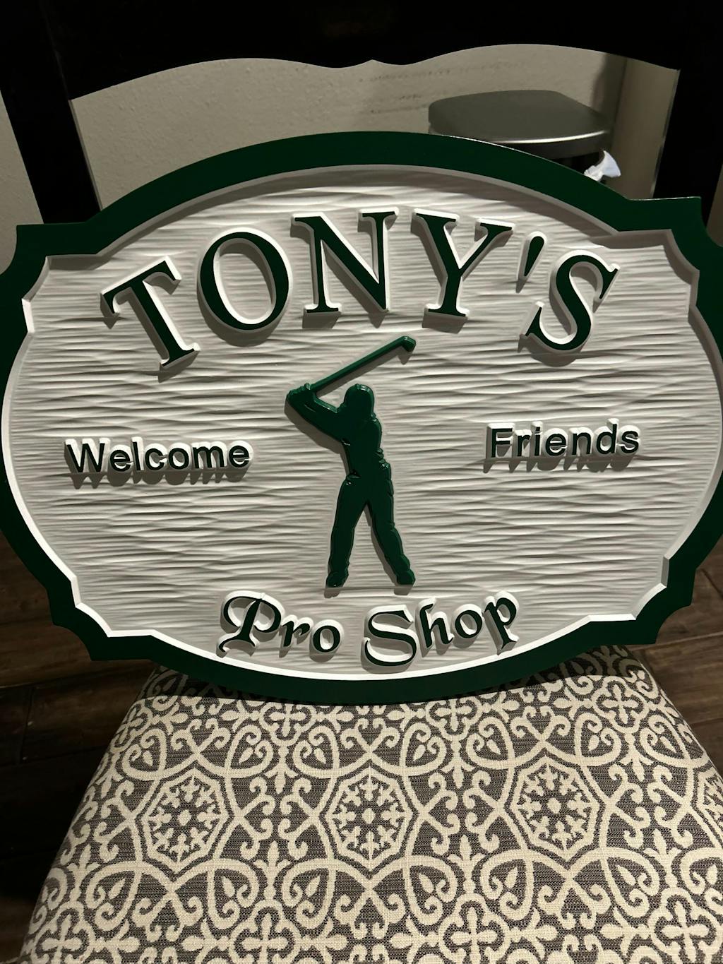 This was a gift for my husband and it is a huge hit. Everyone admires it. Beautiful craftsmanship. I appreciated being guided as to size and lettering. A piece for a lifetime - will be passed on to the next generation. Thank you!